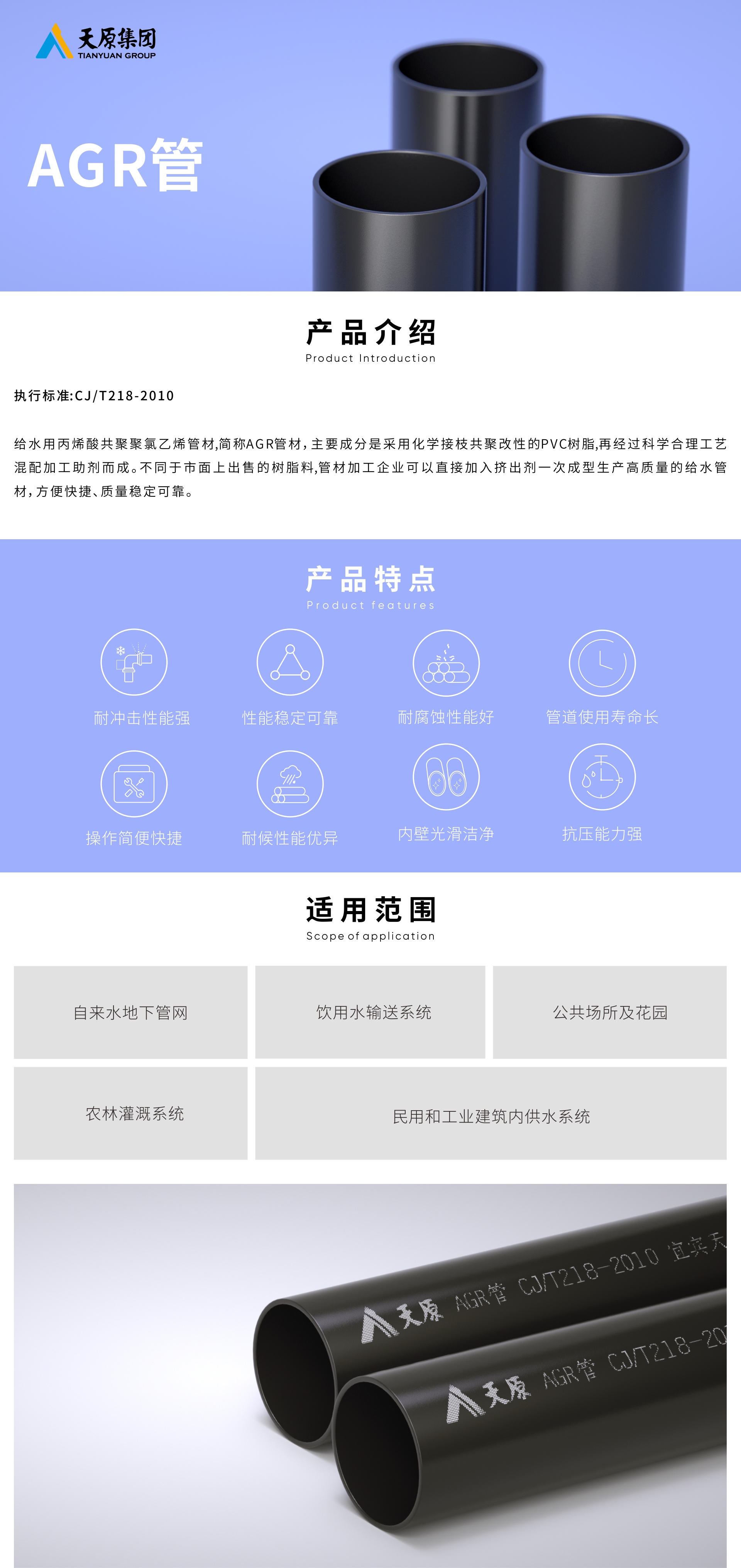 ¸øË®ÓñûÏ©Ëá¹²¾Û¾ÛÂÈÒÒÏ©¹Ü²Ä£¬£¬£¬£¬£¬¼ò³ÆAGR¹Ü²Ä£¬£¬£¬£¬£¬Ö÷ÒªÒòËØÊǽÓÄÉ»¯Ñ§½ÓÖ¦¹²¾Û¸ÄÐÔµÄPVCÊ÷Ö¬£¬£¬£¬£¬£¬ÔÙ¾ÓÉ¿ÆÑ§ºÏÀí¹¤ÒÕ»ìÅä¼Ó¹¤Öú¼Á¶ø³É¡£¡£¡£¡£¡£¡£¡£¡£²î±ðÓÚÊÐÃæÉϳöÊÛµÄÊ÷Ö¬ÁÏ£¬£¬£¬£¬£¬¹Ü²Ä¼Ó¹¤ÆóÒµ¿ÉÒÔÖ±½Ó¼ÓÈë¼·³ö¼ÁÒ»´Î³ÉÐÍÉú²ú¸ßÖÊÁ¿µÄ¸øË®¹Ü²Ä£¬£¬£¬£¬£¬Àû±ã¿ì½Ý¡¢ÖÊÁ¿Îȹ̿ɿ¿¡£¡£¡£¡£¡£¡£¡£¡£